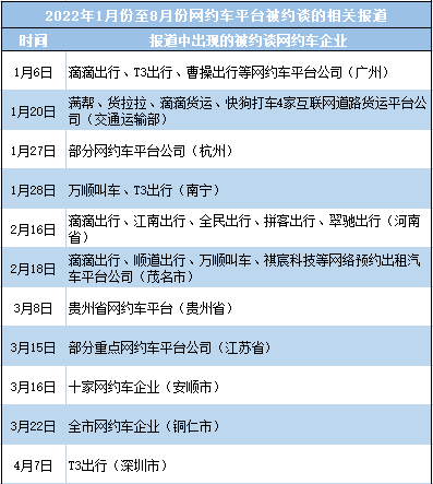 2022年网约车平台被约谈情况。谢佳亮 制图